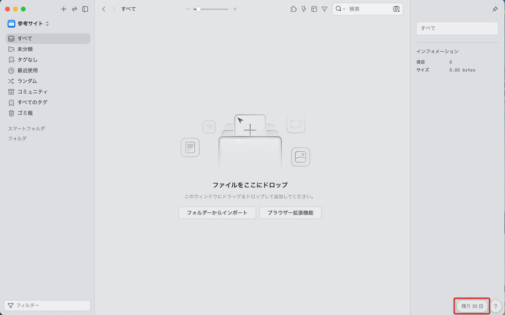 試用期間中は、右下に残日数が表示されます。
