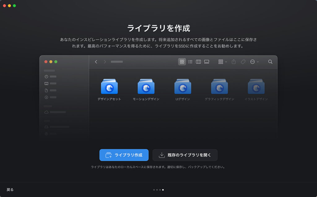 「ライブラリを作成」ボタンを押して、任意の場所にフォルダを作成して、初期設定完了です。